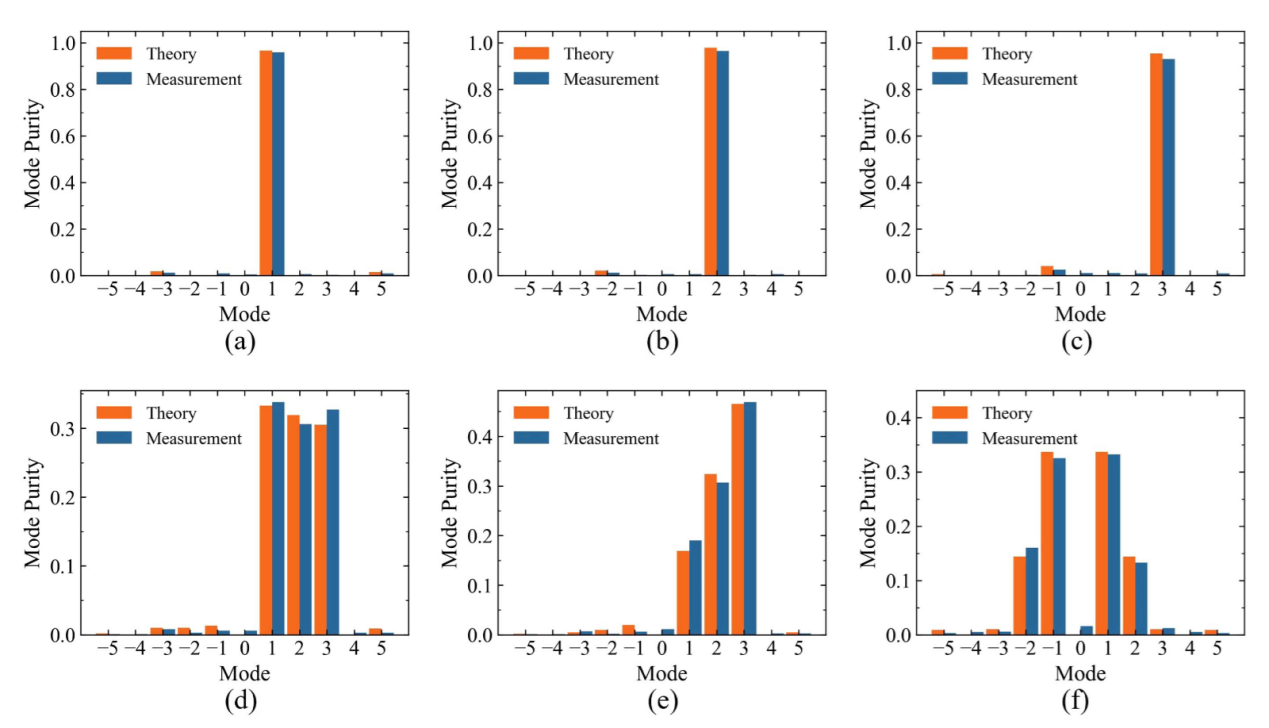 图5 复用涡旋波束模式纯度理论与实验结果对比图