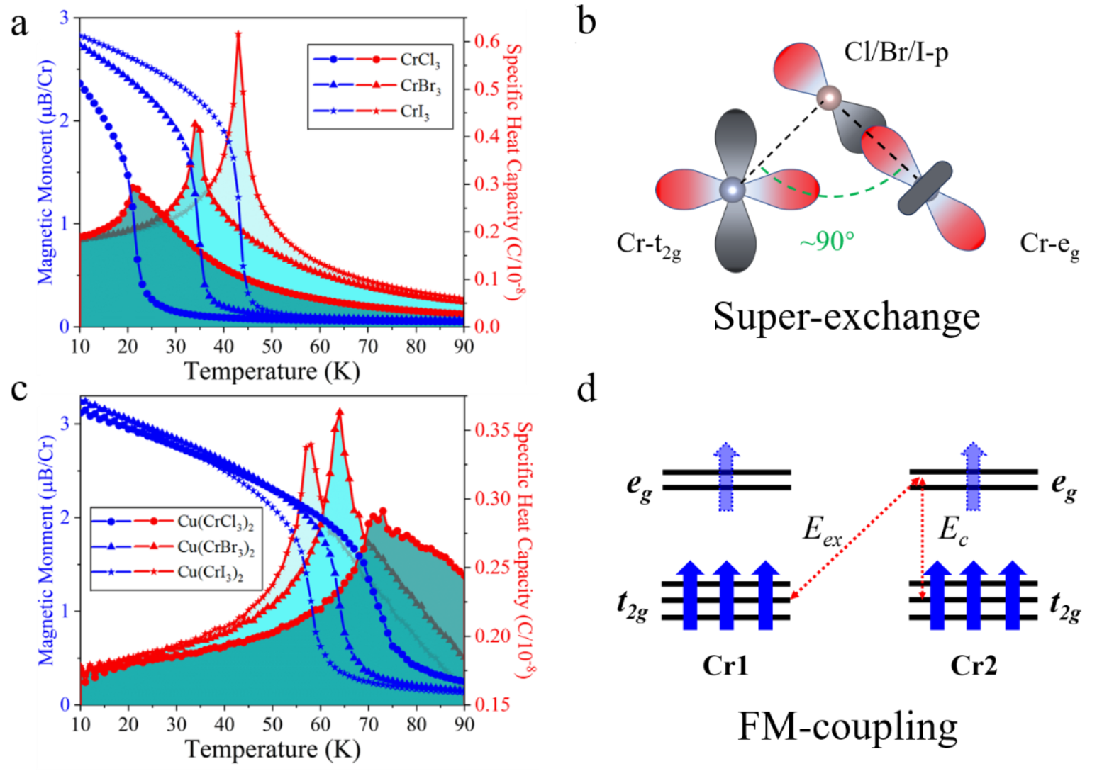 图3.CrX3和Cu(CrX3)2的磁性
