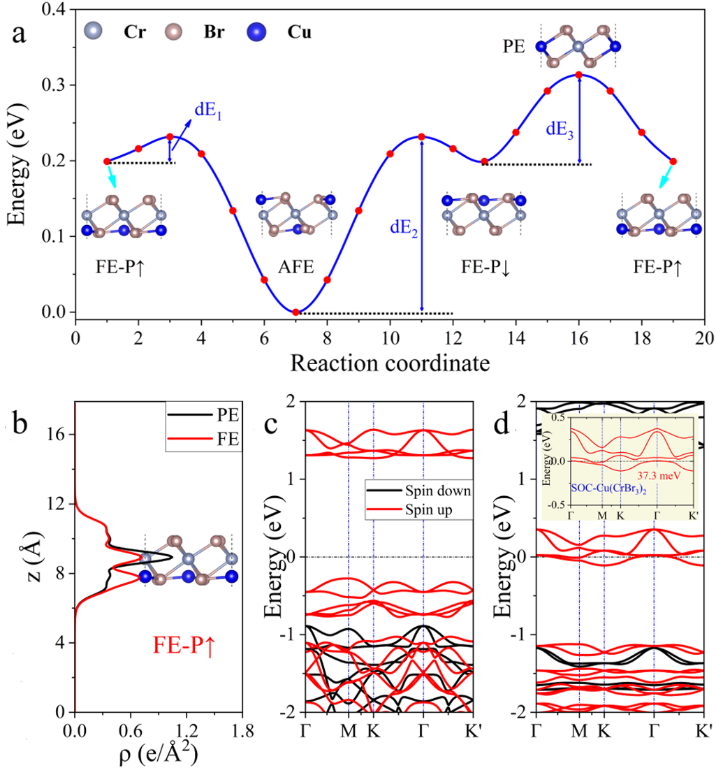 图2.铁电翻转路径及能带图