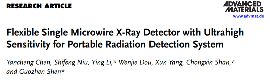 论文详情:Flexible Single Microwire X-Ray Detector with UltrahighSensitivity for Portable Radiation Detection System. Adv. Mater. 2024, 2404656.