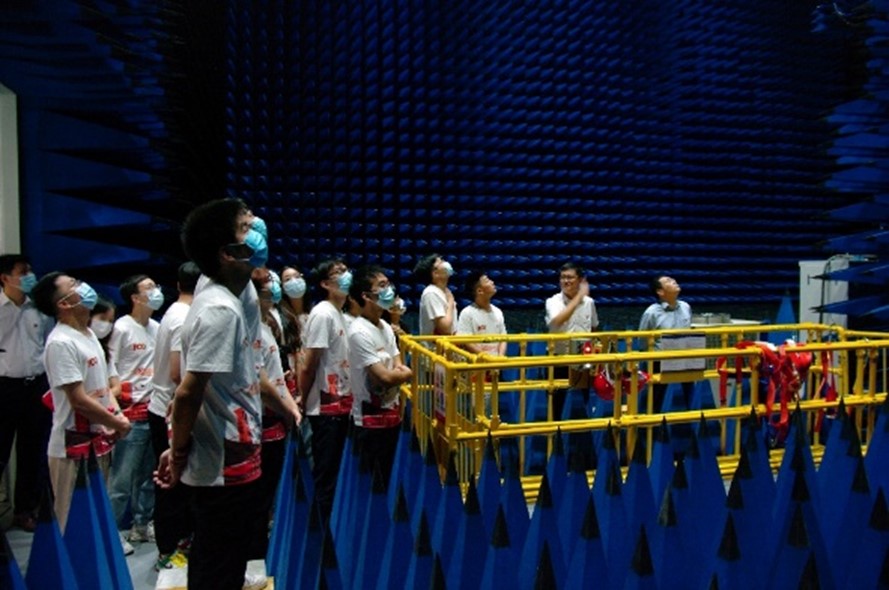 赵海明带领大家参观测试暗室,并与集电学院师生进行了互动交流。