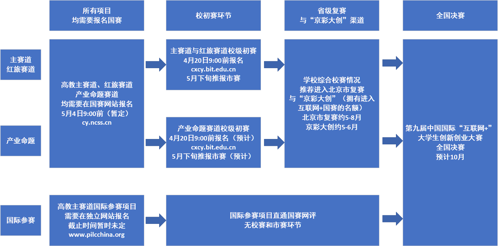 (三)“互联网+”北京赛区复赛(2023年5月-8月)及“京彩大创”大赛(2023年5月-6月)。