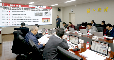 电子科学与技术学科责任教授小组组长盛新庆作自评汇报,从学科方向、人才培养、师资队伍、科学研究、服务贡献等方面系统总结了学位点建设经验和成效。