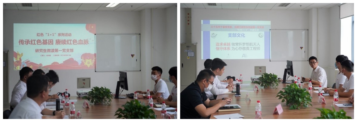 研究生微波第一党支部书记刘庆国以“传承红色基因 赓续红色血脉”为主题详细介绍了研究生微波第一党支部的“点线面”的支部工作法及工作成效。三十五所十室党支部书记王俊峰对党支部的基本情况、专业科研发展、技术领域以及专业人才需求等情况进行了介绍。