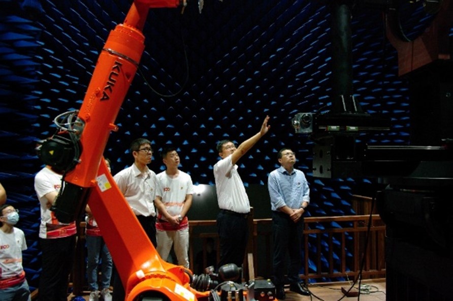 赵海明带领大家参观测试暗室,并与集电学院师生进行了互动交流。