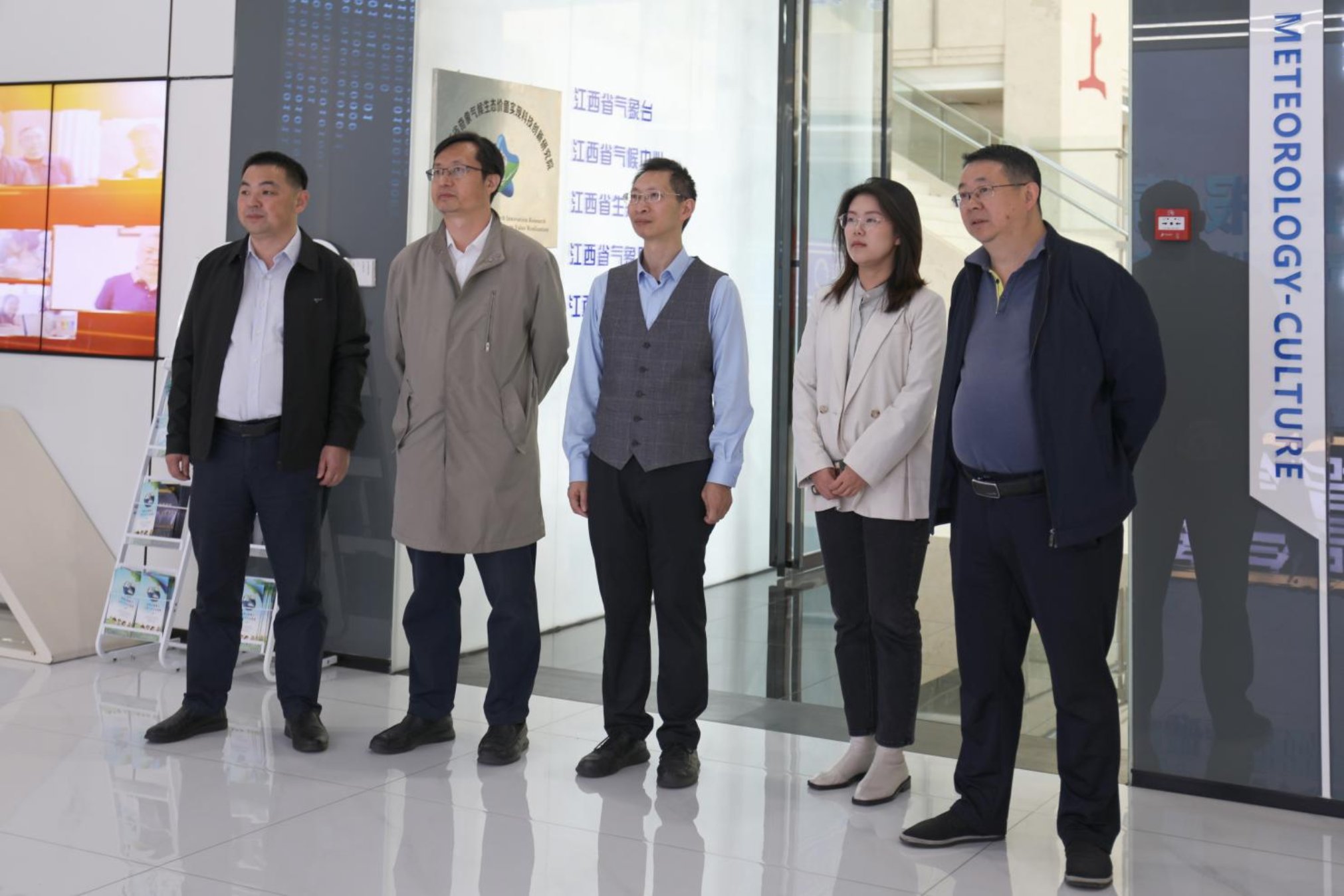 傅雄军一行参观了江西省气象局、江西省气象产业链产学研用基地、气候变化风险与气象灾害防御江西省重点实验室。