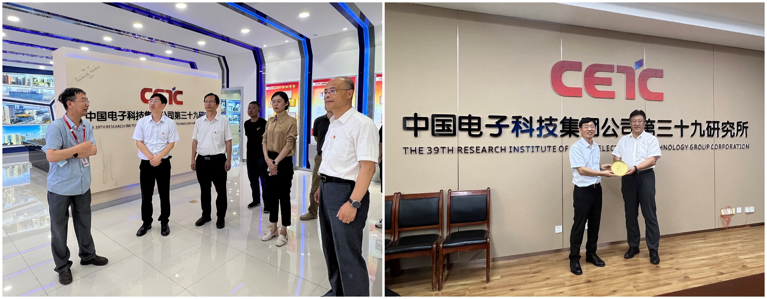 在中国电子科技集团公司第三十九研究所,王业亮一行参观了研究所展厅,并与研究所所长王玉宝、副所长任文龙及相关部门负责人开展座谈。双方围绕校企合作、人才培养、就业实习等方面进行了深入交流。