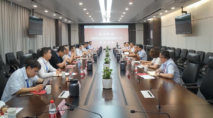 在交流环节,王业亮详细介绍了学院建设发展的基本情况及近两年学院在科学研究、人才培养、产学研合作等方面取得的成果,并表示学院和研究院同样潜心科研、服务国家重大战略,有着良好的合作基础,希望以本次交流学习为契机,进一步发挥双方优势,集中力量攻克专业难题,促进产业升级。
