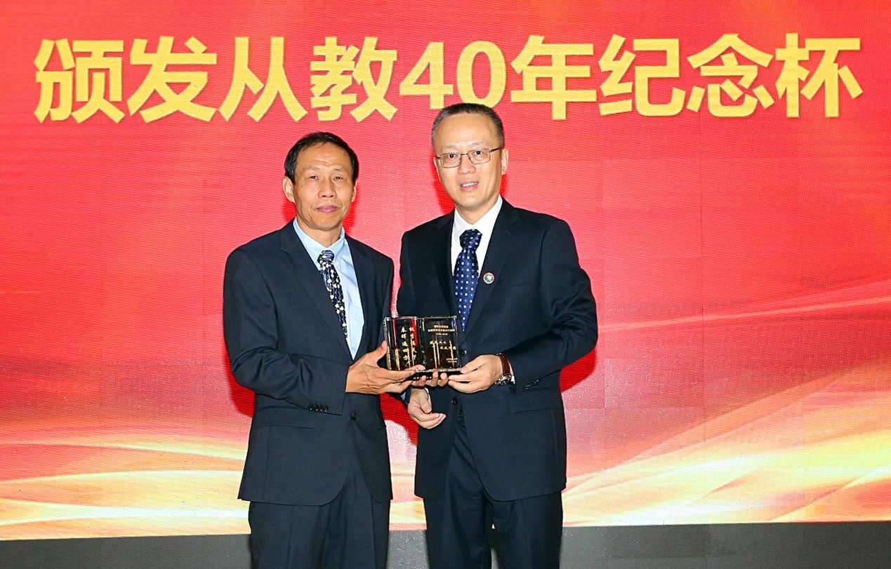 龙腾院士为吕昕教授颁发从教40周年纪念杯。