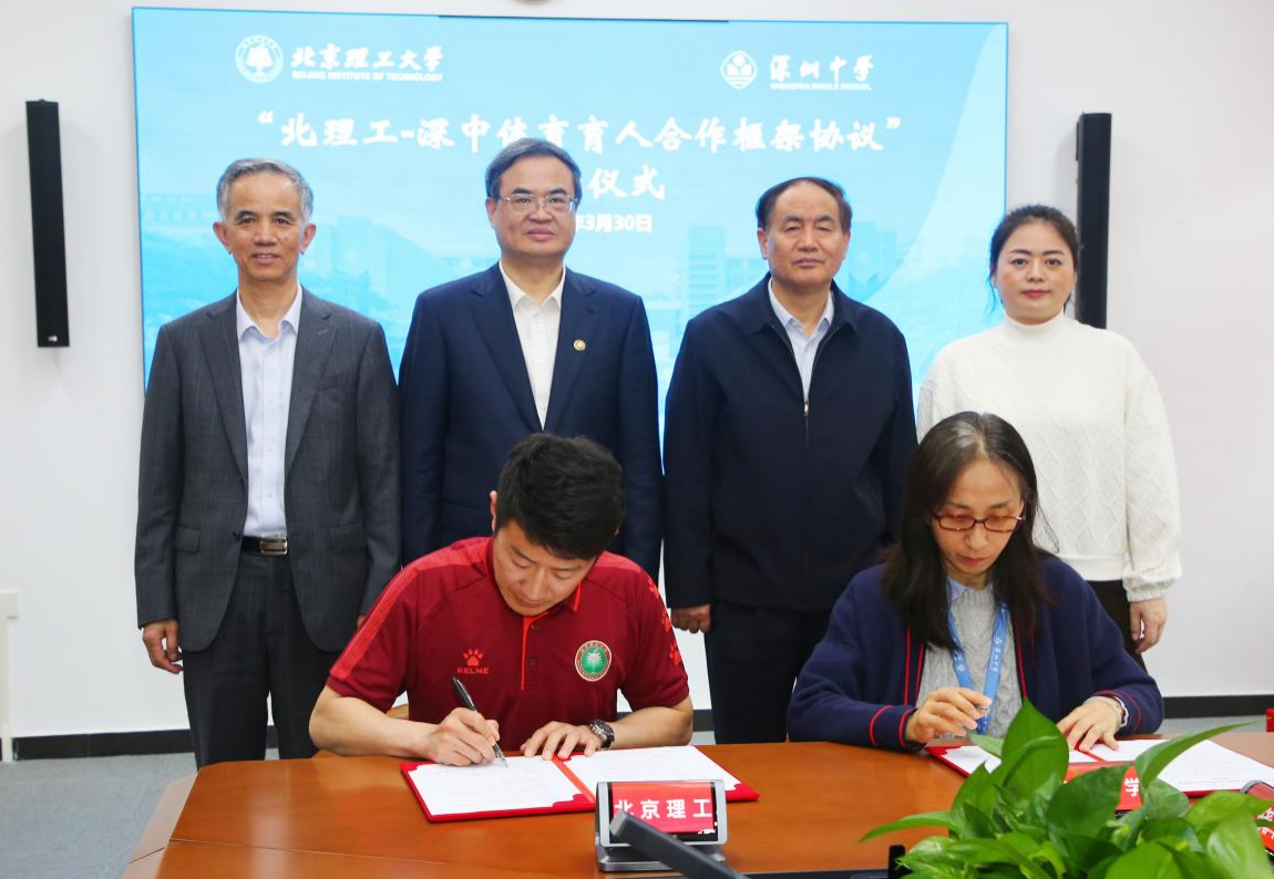 为进一步加强两校间体育育人合作,在联合运动员培养、校园文化交流等方面加深联系,必威西汉姆联官网体育部主任赵汐和深圳中学副校长王新红共同签署了“北理工-深中体育育人合作框架协议”,张军、孙逢春、朱华伟、娄俊颖共同见证签约仪式。