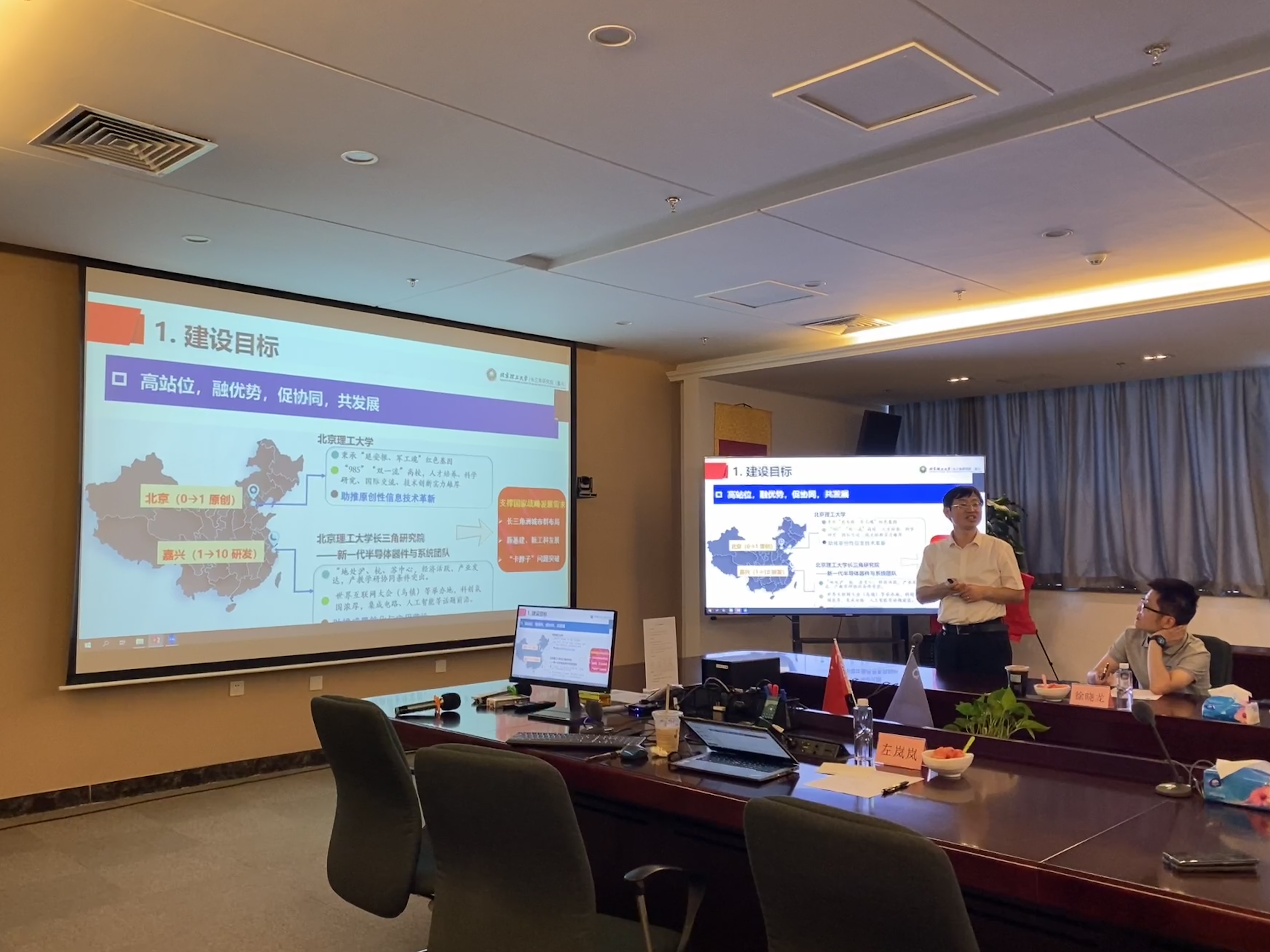 王业亮汇报了学校在新一代半导体及器件集成方向的研究布局和进展情况。