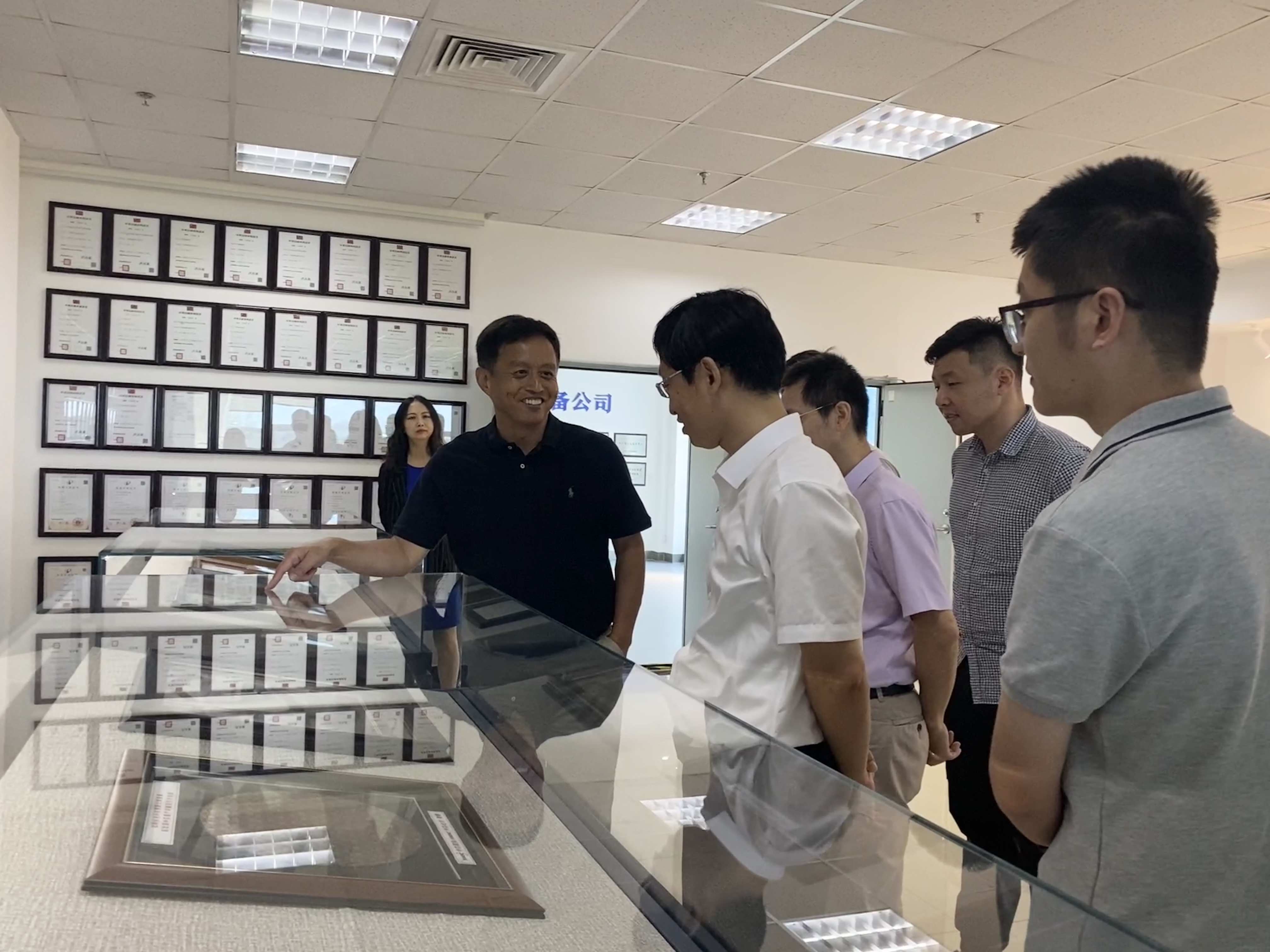 会前,王业亮一行参观了公司的产品展厅和研发基地。