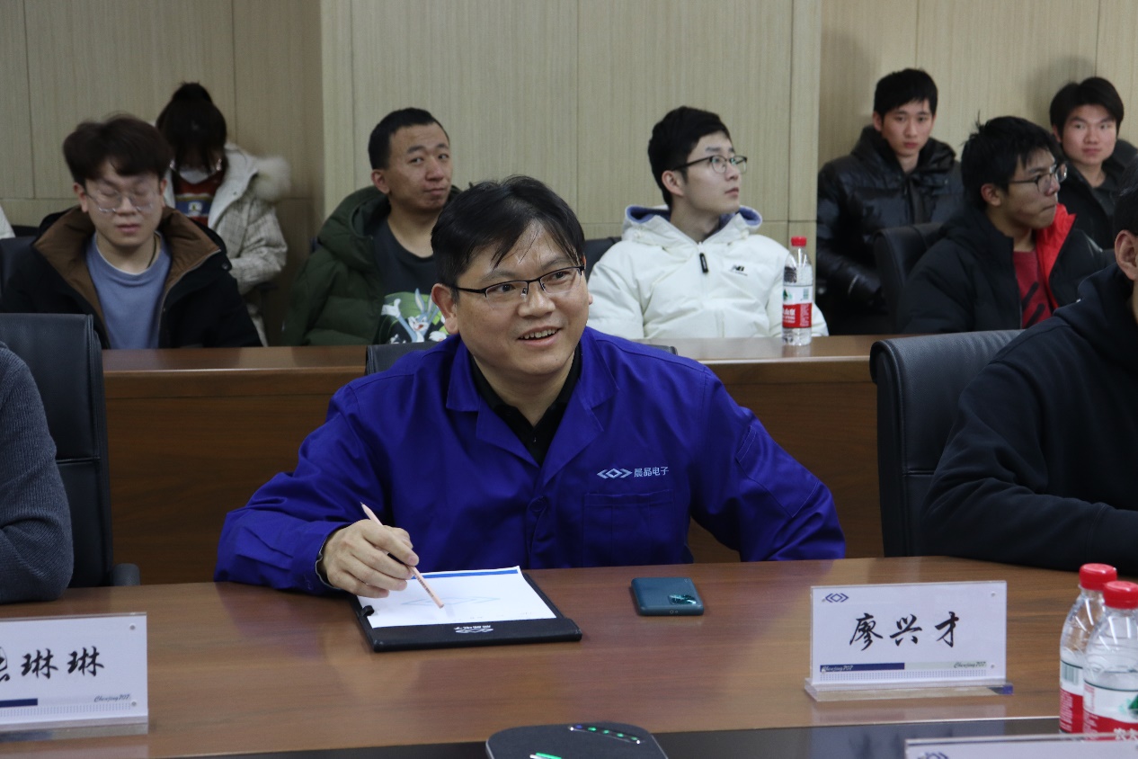 北京晨晶电子有限公司相关人员与师生举行交流座谈。公司副总经理张琳琳对学校师生的到来表示热烈的欢迎,并从晨晶电子的主要业务、应用领域、人才招聘与培养等方面进行了详细介绍。辅导员张晓磊就学院的学科建设、人才培养等方面做了简要介绍,并希望未来能与晨晶电子进一步加强校企交流与合作,提高人才培养质量,助力毕业生高质量就业。