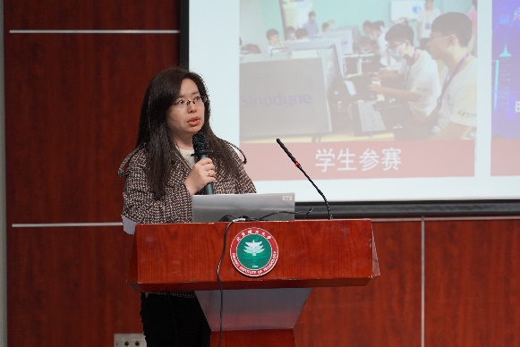 北理工集创赛联络人张蕾老师发言。作为历届集创赛优秀指导教师,她回顾了学校在往年集创赛中取得的优异成绩,与同学们分享大赛备赛经验,介绍了学院的资源保障,包括师资指导、实验室设备等赛事支持。