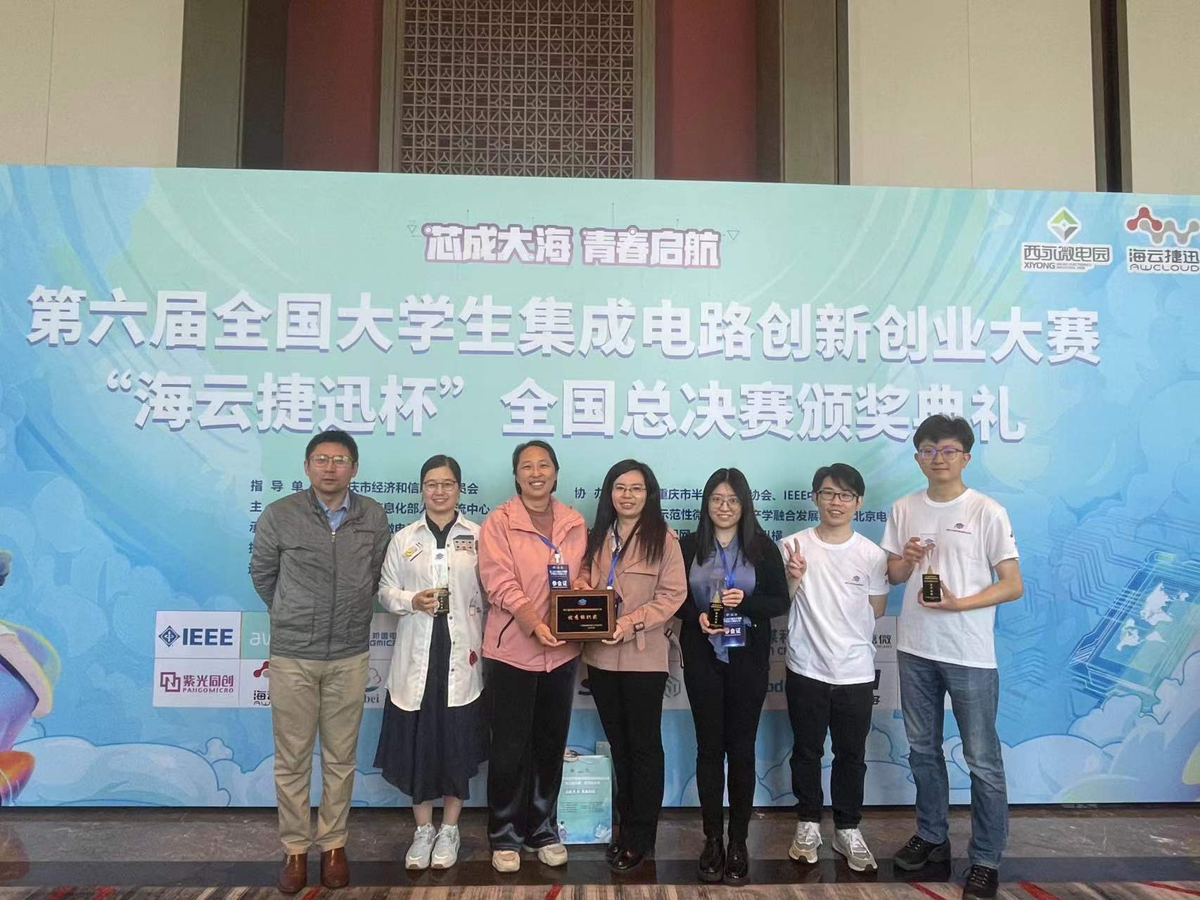 2023年4月15日,第六届全国大学生集成电路创新创业大赛“海云捷讯杯”全国总决赛颁奖典礼在重庆举行。必威西汉姆联官网代表队获得全国一等奖4项、二等奖1项、三等奖8项,在华北分赛区获奖32项。其中,我校代表队荣获3项企业大奖(全国第一),位列全国之首。竞赛举办以来,首次出现同一高校荣获3项企业大奖,打破了大赛记录。自2019年第三届全国大学生集成电路创新创业大赛首次设置企业专项奖以来,我校代表队实现了连续4年企业大奖不断线。